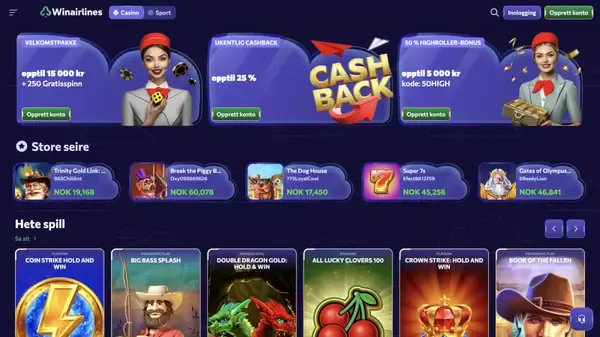 WinAirlines Casino i Norge: klare regler, raskt spill og 5 000+ spill