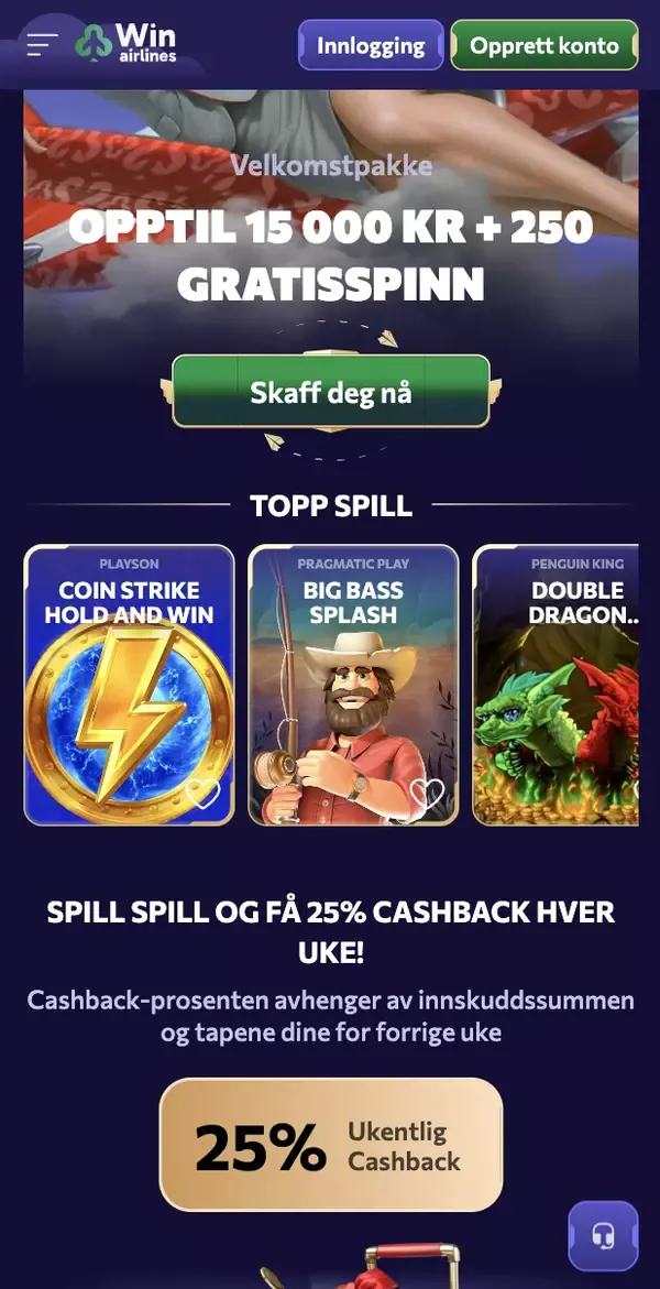 For betalinger og kampanjer ligger alt i samme meny. Dette inkluderer vårt lojalitetsprogram med fire nivåer, pluss en eksklusiv VIP-klubb for Gold- og Platinum-medlemmer. Hvis du lette etter en WinAirlines mobilapp, gir mobilnettstedet de samme praktiske verktøyene, og du kan bruke det smidig på WinAirlines mobil uten ekstra nedlastinger. Inne i WinAirlinesCasino forblir spillehistorikken og bonusfremdriften din konsekvent på telefon og desktop.